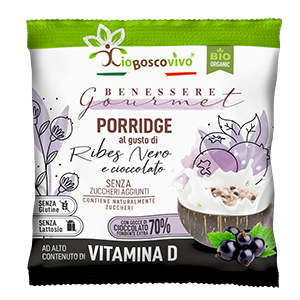 Organic Oat PORRIDGE with Blackcurrant , Chocolate drops 70% and Shiitake. Rich in Vitamin D. Vegan. Gluten free. 40 g